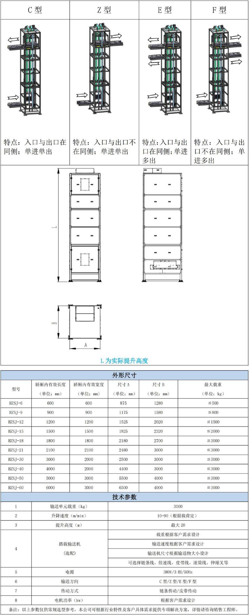 該設(shè)備結(jié)構(gòu)合理、運(yùn)行平穩(wěn)、高速靜音、安全可靠,承載量可達(dá)3噸,提升高度可達(dá)20米,安裝維護(hù)方便實(shí)用,是替代貨物電梯理想的貨物輸送設(shè)備。標(biāo)準(zhǔn)化的橋箱接口可方便選擇各種包裝箱、托盤、卡板等靈活多樣的工件形式。該設(shè)備配置多種防墜、互鎖等安全裝置,從而保證人身貨物安全,可廣泛應(yīng)用于汽車、食品、煙草、郵政、化工、輕工、機(jī)械、電子、食品、倉(cāng)儲(chǔ)物流等自動(dòng)化生產(chǎn)行業(yè)。